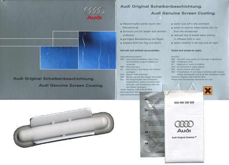 Автомобильные гиганты Audi, BMW, Citroen, Lexus, WV и Volvo постоянно используют для защиты стекол только (!) профессиональное средство Ombrello Glass Treatment. Теперь и у Вас появилась возможность защитить стекла своего автомобиля проверенным уникальным средством антидождь - антиснег - антилед, обладающим долговременным эффектом.
