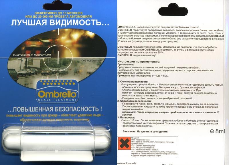 инструкция по нанесению средства для защиты лобового стекла Ombrello