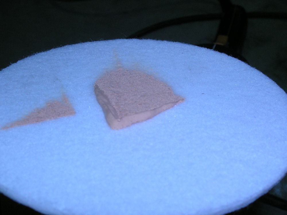 6. При необходимости (слабо полирует, малое количество полировальной пасты в месте полировки), добавить еще полировальной пасты. Продолжить полировку. Повторить цикл 2-5 раз, до достижения необходимого эффекта.