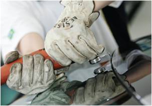 2. Поврежденное стекло может сниматься с использованием следующих инструментов: электрический нож для срезания материала по кромке, режущая проволока, нагреваемый нож. Примечание: не перегревайте нож! Чрезмерно высокая температура может привести к оплавлению поверхности среза старого клея. Для выполнения требований по технике безопасности используйте защитные очки.
