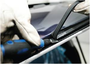1. Снимите всю декоративную отделку, накладки, уплотнения, крепежные детали и стеклоочистители, в соответствии с инструкциями изготовителя автомобиля. Перед снятием стекла обеспечьте защиту окрашенных поверхностей кузова от повреждения с помощью изоляционной ленты.
