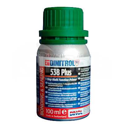 DINITROL 538plus – это многофункциональная однослойная грунтовка компании DINOL. Она представляет собой раствор, содержащий физически и химически высыхающую основу, которая обеспечивает адгезию между окрашенными и стеклянными поверхностями с PUR клеями компании DINOL, а также действует в качестве защиты клея от лучей ультрафиолетового спектра. Данная грунтовка сочетает следующие функции в одном продукте: