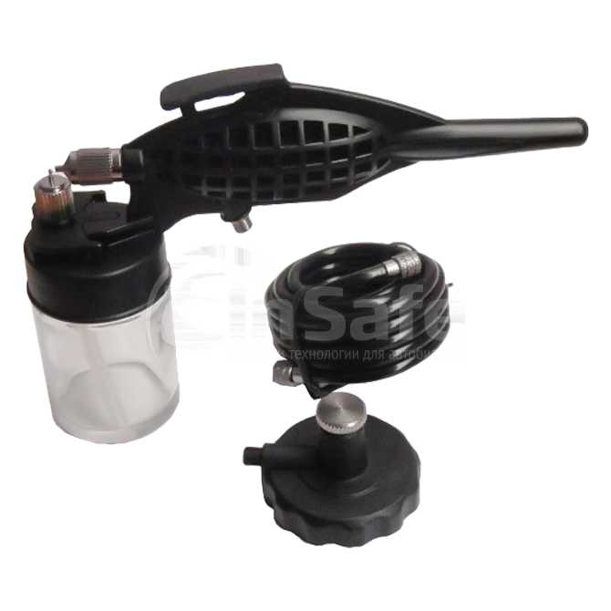 Небольшой аэрограф, подходящий для распыления всех видов красок на водной основе и на основе растворителей. Аэрограф идет в комплекте со всеми аксессуарами, необходимыми для подключения его к баллону с воздухом или мини-компрессору.