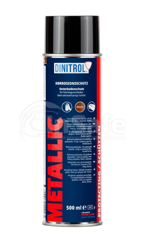 Антикор днища Dinitrol Metallic – это тиксотропный антикоррозионный материал на основе битумных и восковых компонентов с содержанием алюминиевого наполнителя. Шумоизоляция арок Динитрол Metallic хорошо противостоит абразивному износу и продается в удобном аэрозольном баллоне на 500 мл.