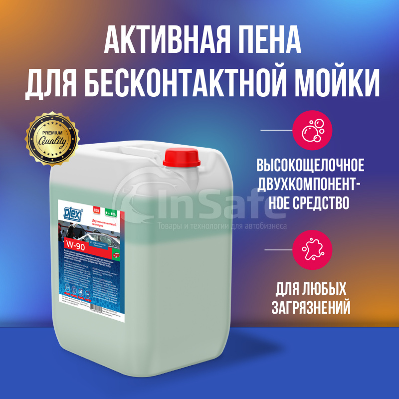 Plex W-90 — высокощелочное концентрированное двухкомпонентное средство, предназначенное для профессиональной бесконтактной мойки автомобилей и технических средств любого типа. Продукт разработан для эффективного удаления твердых загрязнений с кузова и перемещается, при этом гарантируя безопасность лакокрасочных покрытий.