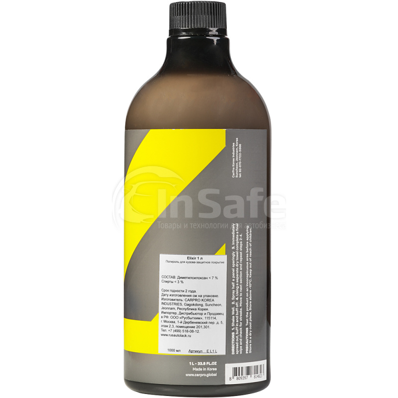 Производитель оставляет за собой право на изменение внешнего вида, комплектации и технических характеристик товара Быстрый защитный состав CarPro Elixir 1 л CP-EL1L без уведомления дилеров. Указанная информация не является публичной офертой.