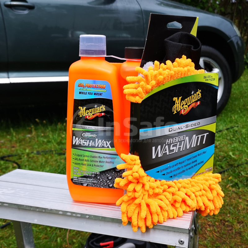 Для достижения наилучших результатов во время мытья используйте Meguiar's Hybrid Wash Mitt - двухсторонняя варежка премиум-класса (продается отдельно). Однако можно использовать любую другую варежку премиум-класса из микрофибры.