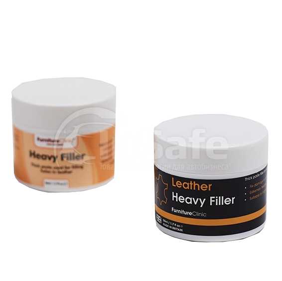 Густой ремонтный состав (Heavy Filler) является очень гибким наполнителем, используется для ремонта потертостей, царапин и отверстий в коже. Продукт применяется в основном на часто используемых поверхностях, таких как сиденья и подлокотники, там, где необходим долговечный ремонт. Для трещин следует использовать жидкий ремонтный состав (Flexifil).