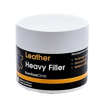 Густой ремонтный состав (Heavy Filler) является очень гибким наполнителем, используется для ремонта потертостей, царапин и отверстий в коже. Продукт применяется в основном на часто используемых поверхностях, таких как сиденья и подлокотники, там, где необходим долговечный ремонт. Для трещин следует использовать жидкий ремонтный состав (Flexifil).
