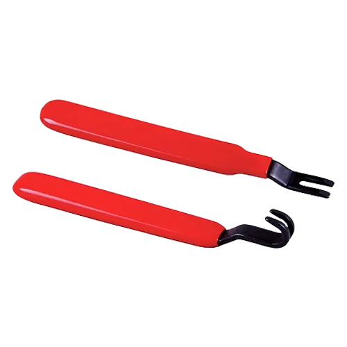 Два инструмента для снятия зажимов имеют тонкий и прочный наконечник. Они позволяют снять все мелкие зажимы, которые почти невозможно повторно использовать, поскольку их трудно снять без повреждения.