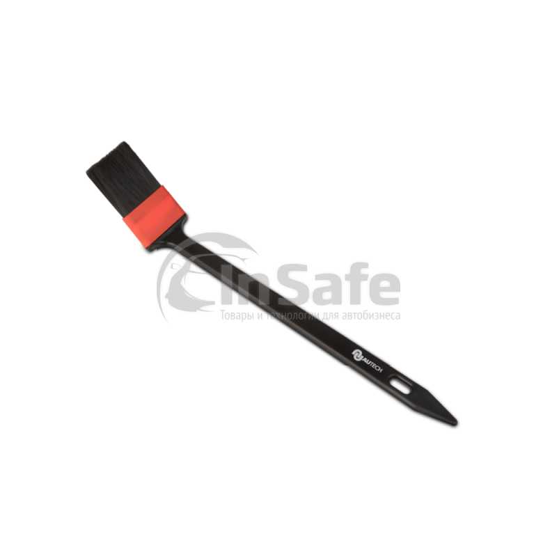 Кислотостойкая кисть для очистки дисков, радиатора и двигателя с высококачественной синтетической щетиной и пластмассовой обоймой; отсутствие металлических деталей позволяет избежать повреждений.