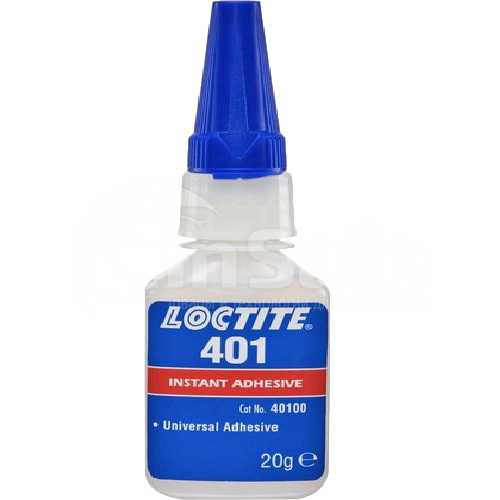 Loctite 401 - быстро полимеризующийся, однокомпонентный цианоакрилатный клей. Предназначен для материалов, трудно поддающихся склеиванию. Быстрое склеивание широкого ряда материалов: металлов, пластиков, эластомеров. Хорошо склеивает пористые материалы или абсорбенты, как например, дерево, бумагу, кожу или ткань.