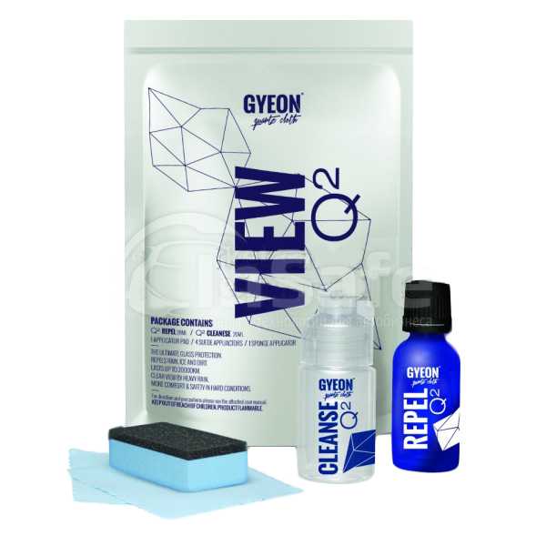 На скорости более 50 км/ч дождевые капли, дорожная грязь и снег легко удаляются при движении автомобиля набегающим потоком воздуха, что обеспечивает прозрачность и чистоту ветрового стекла практически без использования щеток стеклоочистителей. Нанесенное покрытие сохраняет свои водоотталкивающие свойства до 12 месяцев или 20 тыс.км. Комплект Q2 View состоит из двух продуктов: Q2 Cleanser - кварцевой основы защитного покрытия и Q2 Repel – придающего мощный, долговечный грязе- и водоотталкивающий эффект.