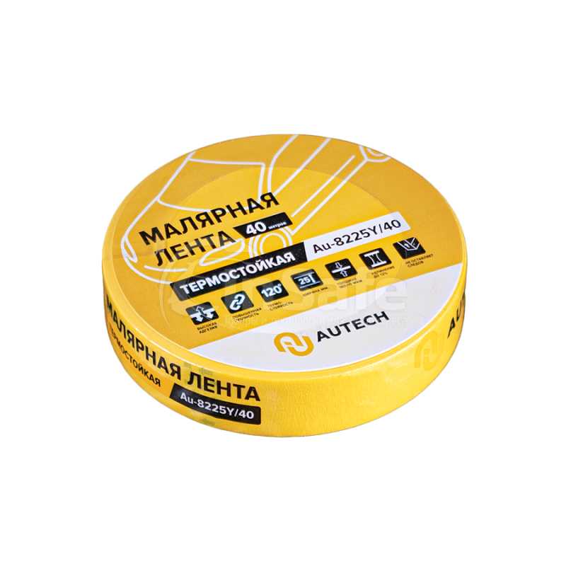 Производитель оставляет за собой право на изменение внешнего вида, комплектации и технических характеристик товара Маскирующая лента термостойкая AuTech 25мм x 50м 120 градусов, жёлтая, Au-8225Y/40 без уведомления дилеров. Указанная информация не является публичной офертой.