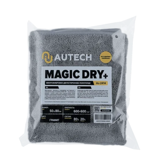 Микрофибровое двухстороннее полотенце 50*80 см, ГРАФИТОВОЕ, 600+600гр/м2 для сушки авто MAGIC DRY+