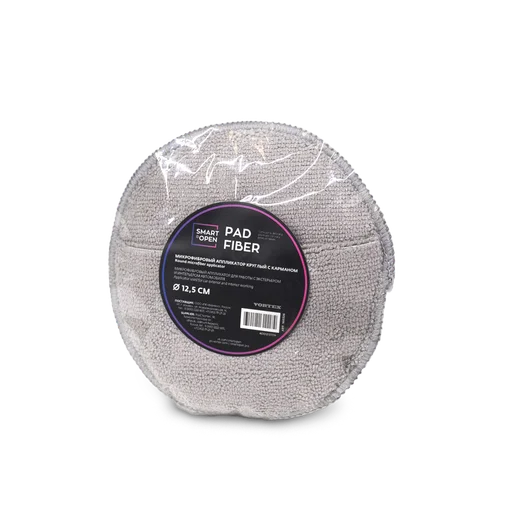 PAD FIBER от Smart Open — это универсальный микрофибровый аппликатор круглой формы диаметром 12,5 см, предназначенный для точного и экономного нанесения автохимии на экстерьер и интерьер автомобиля. Оснащенный прикроватным аксессуаром карман для пальцев, аппликатор обеспечивает надежный захват и контроль во время работы. Микрофибровое волокно не царапает поверхность, не впитывает компоненты глубоко и минимизирует их расход, что делает процесс нанесением иным.