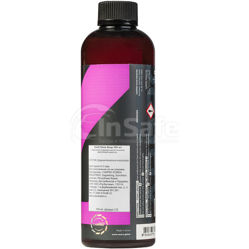 Производитель оставляет за собой право на изменение внешнего вида, комплектации и технических характеристик товара Автошампунь CarPro IRON.X SNOW SOAP мощный очиститель 500 мл без уведомления дилеров. Указанная информация не является публичной офертой.