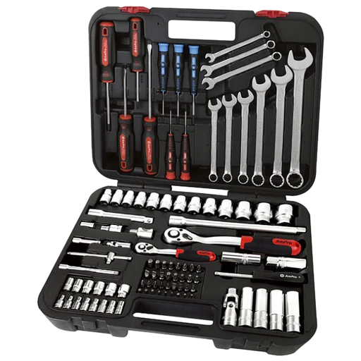 В профессиональный набор инструмента 1/4 и 1/2 T45487 AmPro Tools входят 98 предметов, находящихся в пластиковом кейсе.