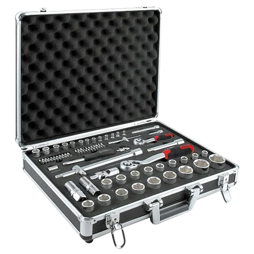 Набор инструмента 1/2" и 1/4" T45916 AmPro Tools состоит из 67 предметов, находящихся в алюминиевом кейсе.