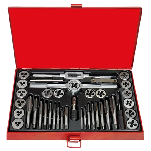 В набор метчиков и плашек T35900 AmPro Tools входят 39 предметов, расположенных в алюминиевом кейсе.