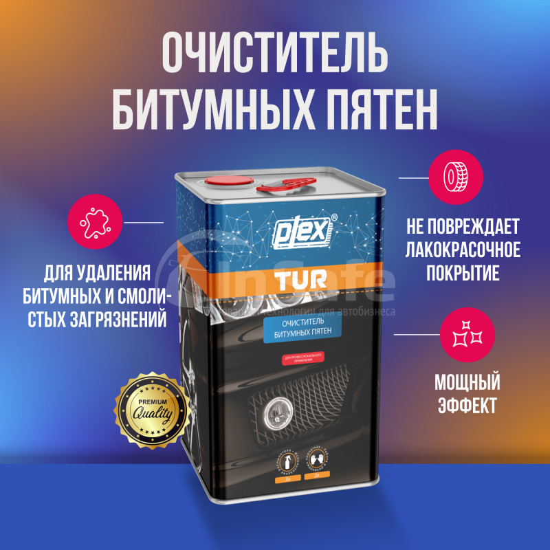 Plex Tur — это профессиональный очиститель, предназначенный для эффективного удаления стойких битумных и смолистых загрязнений с кузова автомобиля. Состав справляется даже с трудноудаляемыми дорожными и техническими загрязнениями, не повреждая лакокрасочное покрытие при соблюдении рекомендаций по применению.