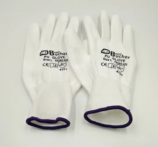 Adolf Bucher Перчатки для механических работ с PU покрытием, белые, 12 пар, размер L