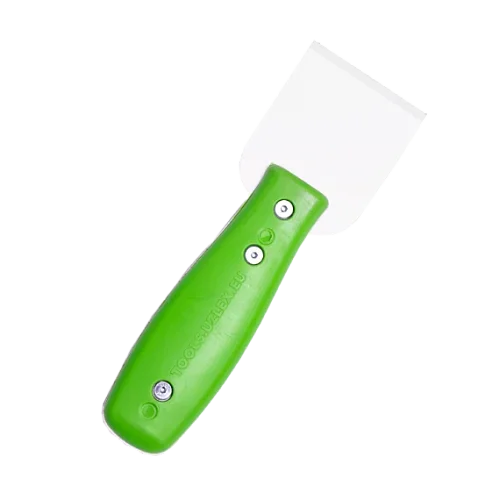 Пластиковый скребок для снятия пленки и чистки поверхности с эргономичной зелёной рукояткой (45мм).
