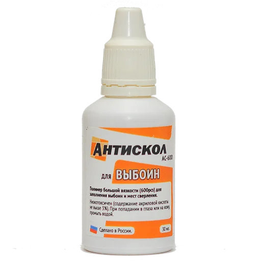 Полимер для ремонта лобовых стекол AC-600, является самым густым из представленных полимеров бренда "Антискол"