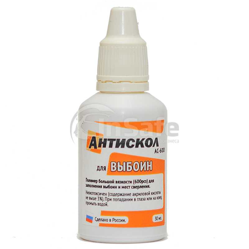 Полимер для ремонта стекол Антискол АС-600 очень плотный для выбоин 30 мл