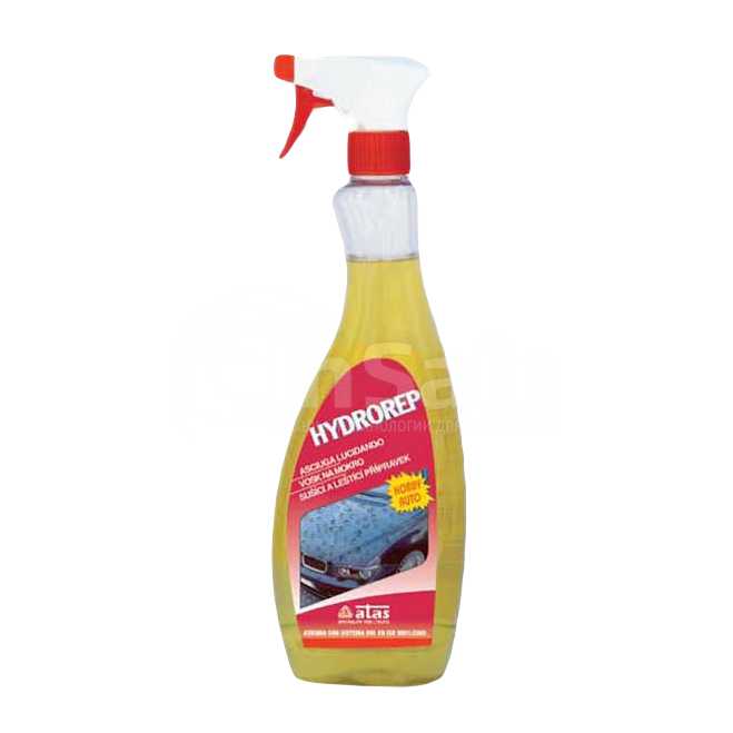 Способ использования: После мойки транспортного средства распылить Hydrorep на влажную поверхность и протереть замшей несколько раз. Не распылять на стекла.