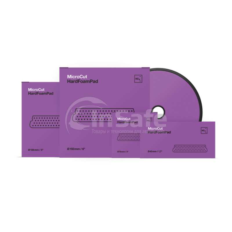 Специальное обновление поролон для Micro Cut Pad. Мы приложили много усилий для улучшения Micro Cut Pad. Теперь в нашем портфолио есть 2 версии данного полировального круга с разной степенью сжатия. Отдельно выделены круги из мягкого поролона Micro Cut, разработанной для сложных красок (например, липкие краски) и круги из жесткого поролона Micro Cut для использования на красках с высоким содержанием сухого остатка. Для простой идентификации данные круги отличаются визуально. На упаковке круга есть знак ромба с надписью "Hard" или перо с надписью "Soft". Сами круги так же имеют отличия. Твёрдые круги имеют тёмно-фиолетовую поверхность липучки и значку ромба на ней. Мягкий круги имеют светло-фиолетовую липучку и значок пера на ней.