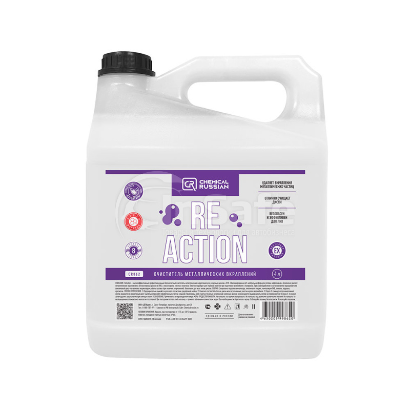 Производитель оставляет за собой право на изменение внешнего вида, комплектации и технических характеристик товара ReAction - очиститель металлических вкраплений, 4 л, CR862, Chemical Russian без уведомления дилеров. Указанная информация не является публичной офертой.