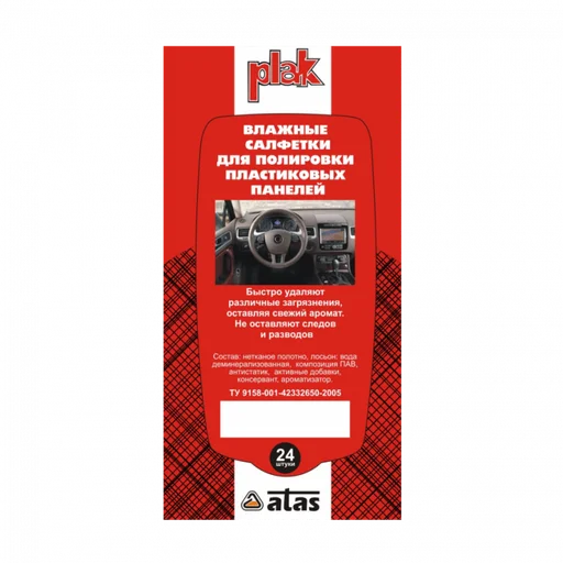 Atas Салфетка влажная для пластика Plak, 24 шт