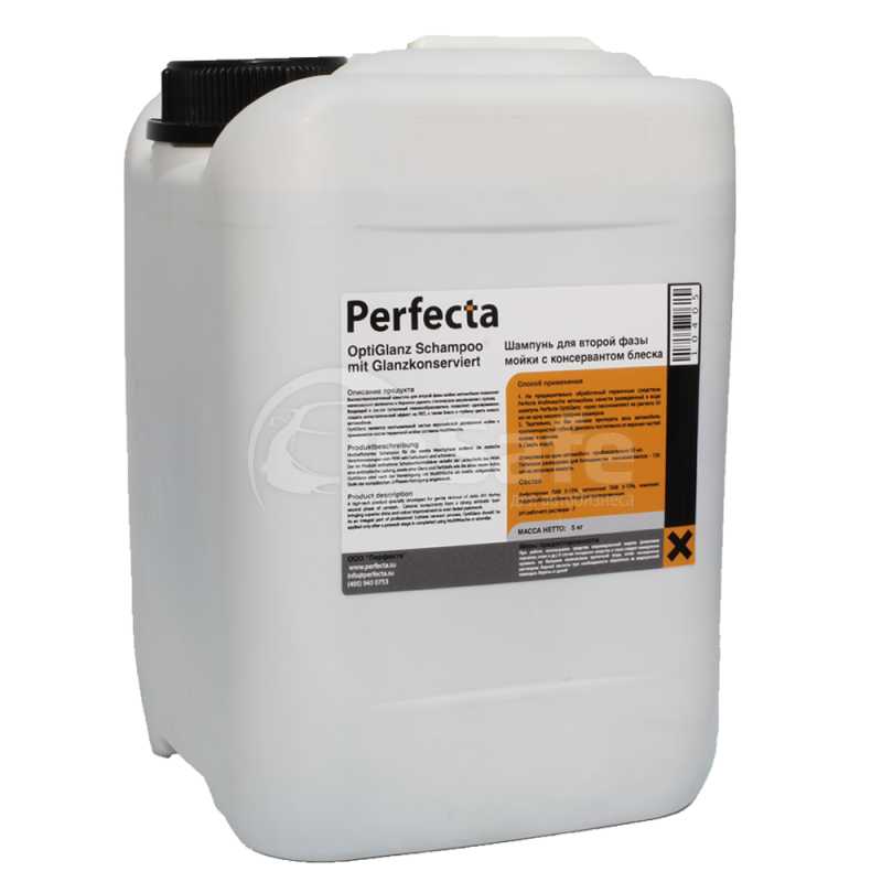 Производитель оставляет за собой право на изменение внешнего вида, комплектации и технических характеристик товара Автошампунь Perfecta OptiGlanz Schampoo mit konservierer 100305 с консервантом блеска 5 л без уведомления дилеров. Указанная информация не является публичной офертой.