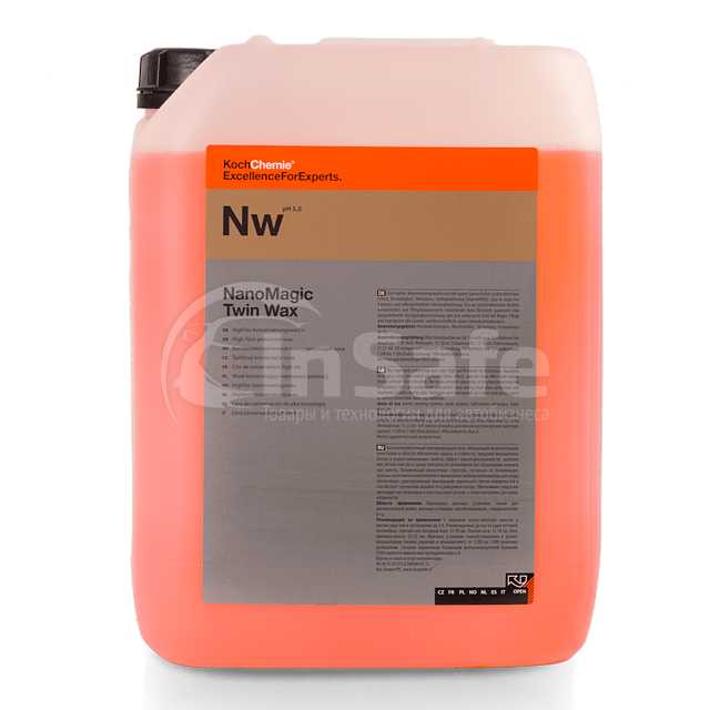 Продукт нового поколения в нано линейке. NanoMagic TWIN WAX Hightec Nano-Hochglanz-Konservierer турбо осушитель + нано-консервант- политура. NanoMagic TWIN WAX ist der Premium-Hochglanzkonservierer не имеет аналогов по силе консервации поверхности, стойкости к внешним воздействиям и приданию превосходного глубокого блеска ЛКП. Самый экономичный состав применяемый для сушки и консервации автомобиля после мойки. После нанесения протереть ЛКП полотенцем. Состав не оставляет разводов на ЛКП и стёклах автомобиля. Прочная гидрофобная структура надолго защищают кузов автомобиля от грязи и пыли, сохраняя блестящую поверхность ЛКП после простой мойки. NanoMagic TWIN WAX содержит углеводороды минерального масла. Имеет быстрый распад в очистных сооружениях.