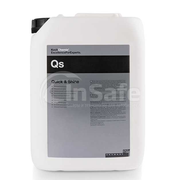Средство универсального применения для всевозможных лакированных поверхностей, пластиковых панелей и стекла. Функциональность QUICK & SHINE elegant - «два в одном», так как содержит компоненты для бережной чистки и ухода, а также консерванты. Данный продукт адаптивно принимает свойства поверхности, на которую его наносят. Очищает внутренний пластик, создавая матовую поверхность с эффектом антистатика. На стекле с легкостью очищает любые загрязнения (пыль, жирные пятна, замутнения от табачного дыма) при этом не оставляя разводов, придавая поверхности гидрофобные свойства отталкивания воды и грязи. Для наружных поверхностей ЛКП и хрома, служит как очиститель по снятию легких пятен и пыли. За счет своей особенности обволакивать грязь и не давать ей соприкасаться с обрабатываемой поверхностью, идеально удаляет с лакокрасочного покрытия незначительные загрязнения, разводы от дождя, малую запыленность и экскременты птиц. Придает блеск, а так же является антистатиком и защитой от мойки до мойки автомобиля. Состав хорошо зарекомендовал себя как продукт для «администратора», так как универсальность его использования позволяет быстро и оперативно исправить недоработки при обслуживании автомашины, не изменяя общего вида поверхностей. После полировки быстро и эффективно позволяет удалить остатки паст с различных поверхностей и выдать автомобиль клиенту, не прибегая к его мойке и не нарушая полученного результата. Удобно применять на выставках и в автосалонах, так как состав придает блеск, очищает быстро все поверхности от отпечатков пальцев и других легких загрязнений.