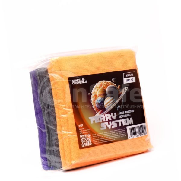 Набор микрофибр премиум-класса Terry System от Space Cosmetics предназначен для универсального использования как в интерьере, так и в экстерьере автомобиля. В комплекте 9 салфеток без оверлока размером 35х35 см и плотностью 300 г/м². Благодаря технологии лазерной резки края салфеток ровные, не мохрятся и не теряют ворс, что значительно увеличивает срок службы и комфорт в эксплуатации.