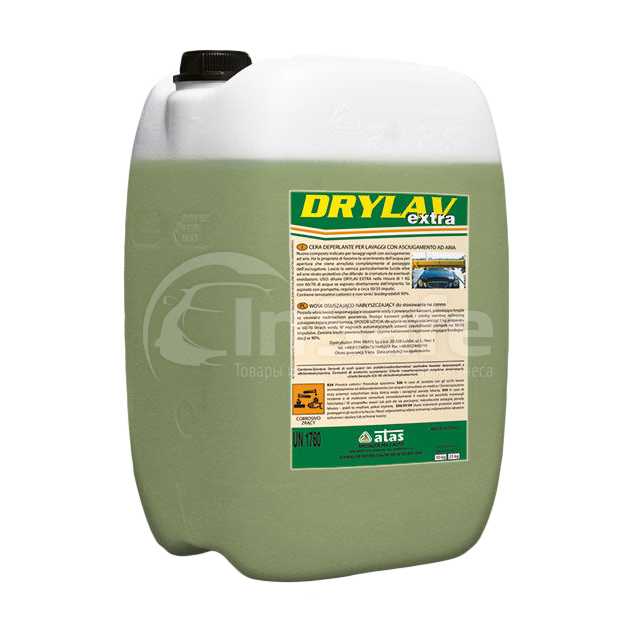 Воск DRYLAV EXTRA концентрированный продукт на основе особых гидрофобных веществ, отлично удаляет воду с кузова автомобиля после ополаскивания, оставляя его сухим и блестящим. Используется в любое время года. Также обладает великолепными защитными свойствами, так как оставляет на поверхности тонкую защитную пленку, которая предотвращает возможное окисление, что упрощает последующие мойки. Не оставляет следов и разводов. Продукт рекомендован к использованию в автомоечных комплексах.