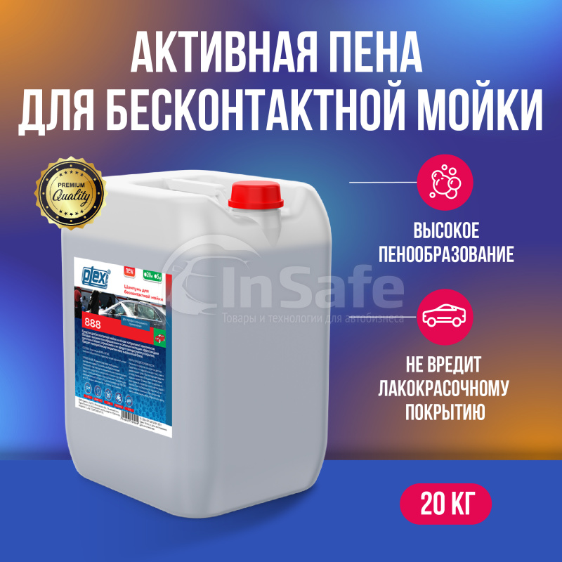 Шампунь для бесконтактной мойки PLEX 888 обладает высоким пенообразованием и сильным чистящим эффектом даже при очень стойких загрязнениях и не вредит лакокрасочному покрытию.