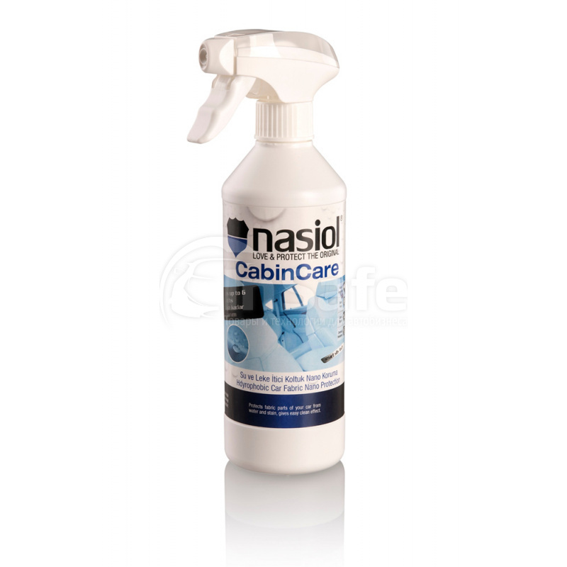 Nasiol Cabin Care Защищает тканевые поверхности автомобиля от выцветания, жидкостей и пятен, такие как сиденья, ковровые покрытия и откидная крыша кабриолета, оставляя их поверхности чистыми и легко очищаемыми. Nasiol Cabin Care создает водонепроницаемое гидрофобное покрытие и защищает текстильные части вашего автомобиля от воды и пятен
